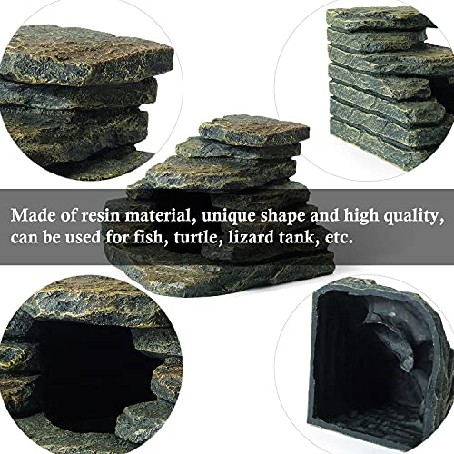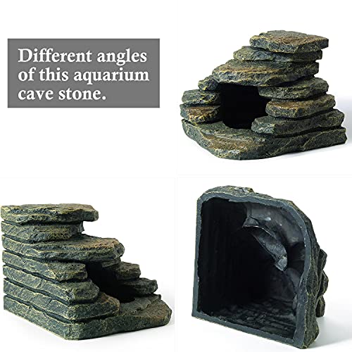 [Interesting and Multi-purpose] This aquarium decoration is very durable and full of fun. The cave can provide a place for fish to hide, shuttle and rest. The stone is a stepped design, which can be used by turtles, lizards , spiders, geckos and other reptiles to play, climb and bask.