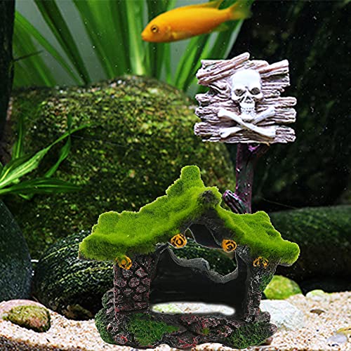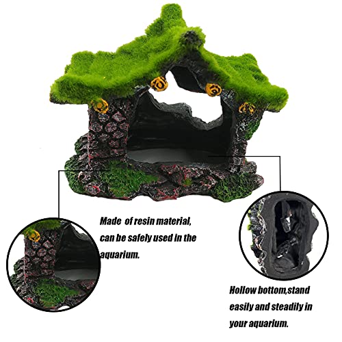 These Small Resin Aquarium Decoration House with moss offers visual interest to your tank while reducing fish boredom.