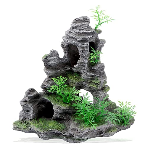 YXQ Aquarium Ornament Mountain Decor Stone Statue Rockery Cave Landscape for Fish Tank Decorations, Large