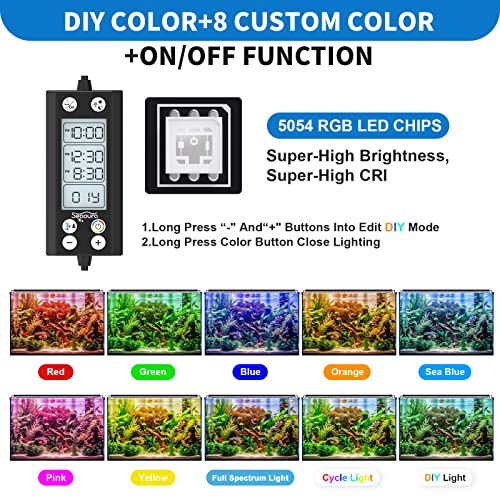 24/7 Auto On/Off Aquarium Light, Programmable Led Aquarium Light with Thermometer, Fish Tank Light with Full Spectrum+7 Single Color, WRBG DIY Color, for 18-24 Inch Planted Tank, 22W