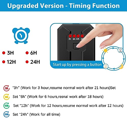 🐟Easy to Operate:Press the button to control the light,updated version with timer(3h,6h,12h,24h) making the whole cleaning process easier than ever. 15 Watt aquarium clean light, suggest that use the light 3-4 hours once in 2-4 days.The power plug and timer should be kept away from water sources to avoid danger.