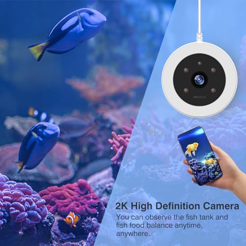 【2K Camera】The HD camera allows you to keep an eye on the health of your fish and the amount of food in the tank. You can also take photos and record videos of your fish with your wife and kids.