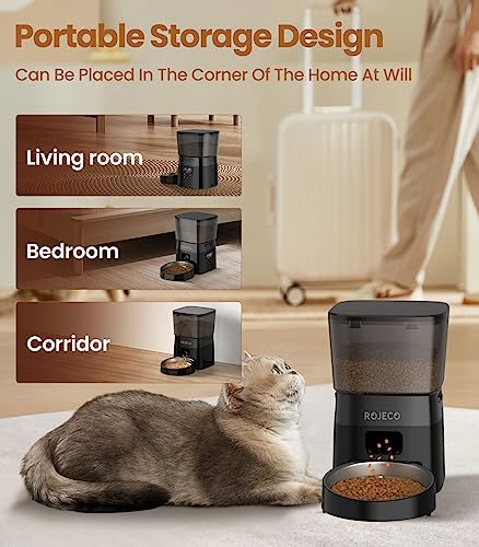 ROJECO Automatic Cat Feeders,8cup/68oz Automatic Cat Food Dispenser,Program 1-6 Meals Control,Auto Timed Cat Feeder for Dry Food,Cats and Puppy Dogs Pet Feeder,Support Dual Power Supply
