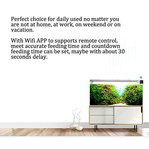 🐟【WiIFI Control】With Wifi APP to support remote control, meet accurate feeding time and countdown feeding time can be set, maybe with about 30 seconds delay. Perfect choice for daily use no matter whether you are not at home, at work, on weekend, or on vacation.