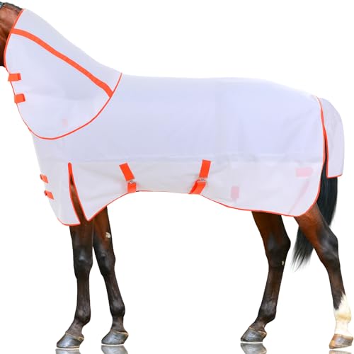 Stylish Design Horse Sheets: you will receive 2 pieces of waterproof horse sheets, enough quantity that you can easily rotate between sheets or have a spare on hand; The summer waterproof riding jacket combines current popular elements, mainly white, with fashionable and eye catching orange stripes as an auxiliary, embellished with classic black, buckle straps with criss cross navel, simple and elegant style, both fashionable and practical