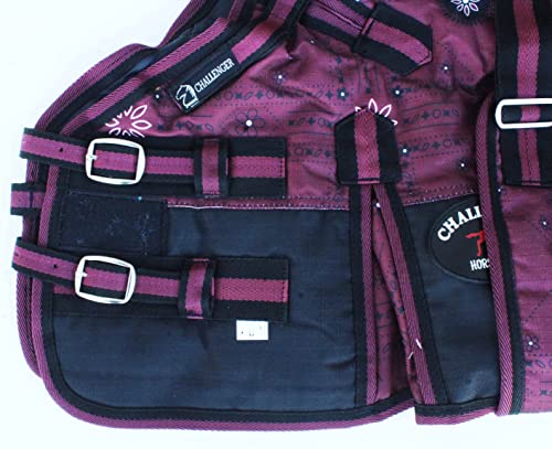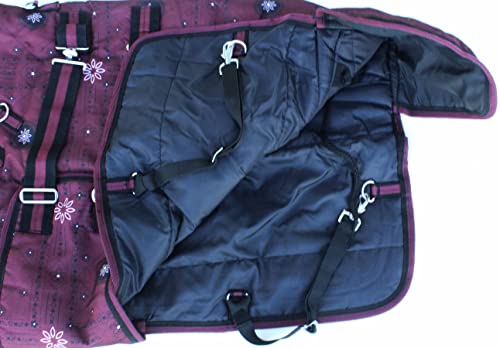 Made of 1200 Denier heavy duty rip-stop outer for durability, and 250g of Polly-fill providing warmth and wind protection. Blanket features an adjustable double buckle front closure, pull & loop adjustable neck, and bellyband for custom snug fit . The reinforced, double-sewn stress points offer additional reinforcement to help prevent tears, while the fleece wither helps provide protection from rubbing. Shoulder gussets allow for freedom of movement and help to prevent shoulder rubbing.