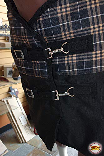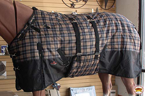 ✔ HIGH QUALITY MATERIALS: These are Hilason Turnout Horse Blankets. The top material is made with Tough Master brand heavy-duty 1200D denier polyester waterproof and breathable rip-stop outer shell. The middle layer material is made with poly good brand 400 gms high-grade poly fill. The extra is a belly wrap system, shoulder gussets, double-buckle front closure, and fleece at withers. The color is Orange Black Plaid and the size is 72’’ inches.