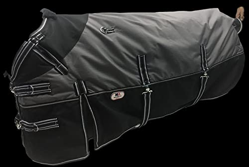 Keep Your Horse Warmer, Dryer, and More Comfortable with Majestic Ally When you want to turn your horse out to pasture in cooler weather you want to cover them up so they can stay warm as they graze and walk around. We created this professional-grade horse turnout blanket as a way to protect them quickly and easily from sudden rain showers, keeping them warm when stopping on trail rides to camp, or just ensuring they’re better covered when they’re outside during the colder months. Designed with 600D ripstop material that’s waterproof, breathable, and lightweight our turnout blanket ensures your horse is ready to enjoy the outdoors but stay more comfortable doing it. Product Details: Professional Horse Turnout Blanket Water-Resistant 600D Ripstop Material Lightweight and Breathable (250 GSM Filling) Adjustable Neck and Crisscross Surcingle Closure Available in Multiple Sizes (See Above) Available in Dark Gray Black or Turquoise Black