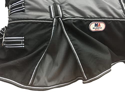 Majestic Ally 600 D Ripstop Nylon Horse Turnout Blanket with Waterproof, Heavyweight Coverage, Rain and Weather Resistant for Fall, or Cold Winter Weather, 250 GSM Fill (Dark Gray Black, 72 – Inch)