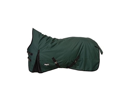 Tough1 1200D Waterproof Poly High Neck Turnout Blanket Help your horse stay warm and dry this winter season with the Tough1 High Neck Turnout Blanket. Warm, durable, and breathable, it features a waterproof 1200 Denier Poly coated outer shell, 210 Denier Poly lining, 300 grams of Polyfill, and a high neck for more warmth and to keep the withers from being rubbed. This breathable turnout is designed to allow moisture vapor to pass wick away from the horse and prevent sweating while retaining body heat and repelling outside coldness. Action shoulder gussets allow for freedom of movement and help to prevent shoulder rubbing, while the tail cover provides additional protection from moisture. Features: 1200 Denier Poly heavy material strength High Neck provides additional neck coverage 300g Polyfill provides medium/heavy warmth and protection from wind and rain 210 Denier Poly Lining prevents rubbing and helps to keep the coat shiny while preventing hair, shavings, and straw from sticking to the inside of the blanket Waterproof, coated outer shell with taped seams and seamless spine repels water to keep your horse dry Heavy nylon binding, double-sewn to secure material and provide additional durability Reinforced stress points, double-sewn with additional reinforcement to help prevent tears Fleece wither helps provide protection from rubbing Double buckle front closure, Velcro secure with double buckle front straps featuring rust-resistant nickel hardware Low cross adjustable surcingles with easily adjustable T-Lock fasteners, ensuring a proper fit Adjustable elastic leg straps help to secure the blanket and prevent from shifting from side to side Note: Material may tear or rip if caught on a nail, rough fencing, or thorns from bushes. Item Specifications: Material: 1200D waterproof ripstop poly outer shell Fill: 300g Weight: Heavyweight Sizes: 69″, 72″, 75″, 78″, 81″, 84″ Colors: Hunter Green Purple Royal Blue Measuring Instructions: Stand your horse as square as possi