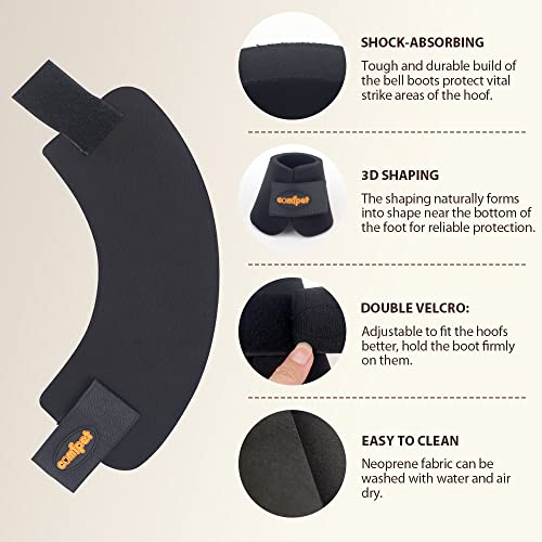 Bell Boots for Horse, Horse Overreach Boots, Thick Neoprene Protect Hoof and Bulb Cushioning, 2 Pack, Medium(Black)