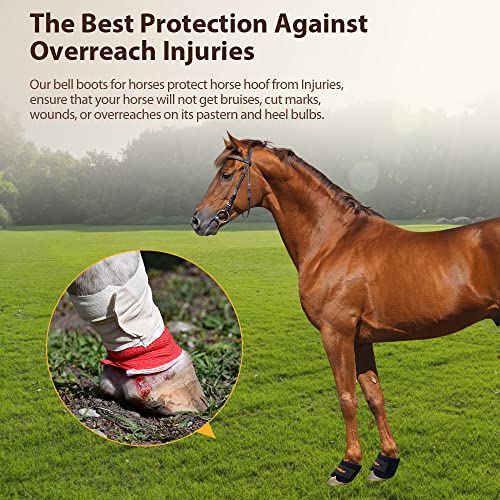 🐴Economical and Durable – These bell boots reduce hoof wear, protect the ball joints, protect your horse from overeaching and stop him pulling the shoes off. They cover a horse’s feet from above the coronary band down to the below the heel and provide protection from the hind feet.