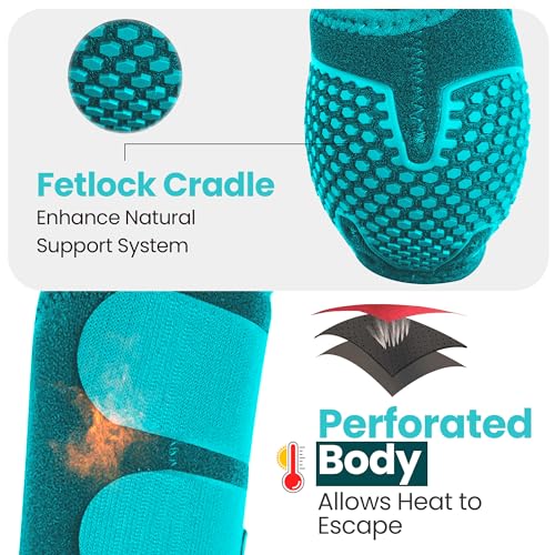 RS Premium Design Horse Boots, Protective and Shock Absorber | Horse Fly Boots Best for Jump Training and for Trails | Ok Fabric Provides Ultimate Flexibility (Torquoise, Medium)