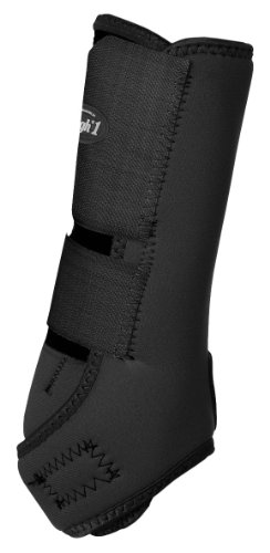 Form fitting design, contoured to shape to the horses leg. 3 “quick grip” tabs hold boot securely in place. Comfortable perforated neoprene allows heat to escape and leg to breathe. Medium.