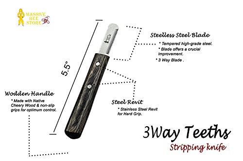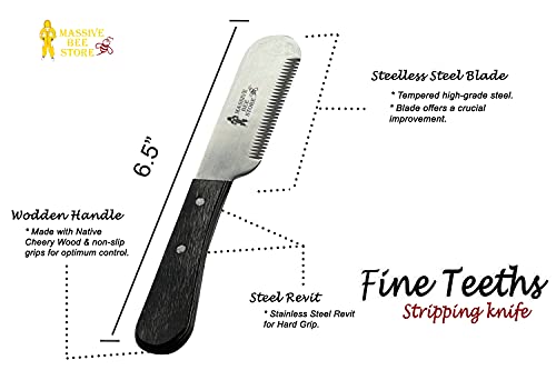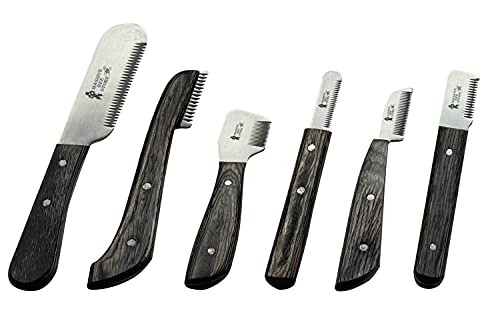 Dog Grooming Coat Stripping Knife Stripper Trimmer Tool Wooded Handle tripping Knives Set of 6 in Stainless Steel non slip tool for grooming dogs (Black)