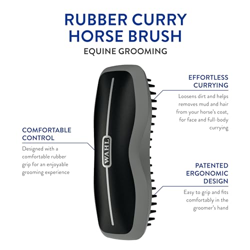 WAHL Professional Animal Equine Grooming Rubber Curry Horse Brush (#858712) – Ergonomic Horse Curry Comb – Horse Brush to Remove Dirt, Mud & Hair – Horse Grooming Brush – Black