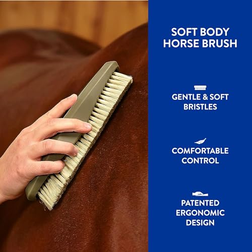 A specially designed, ergonomic body and a rubber grip make it more comfortable for you and allows for easy use. The soft body brush removes fine dirt and hair for a shiny coat with specially spaced bristles for more effective use.