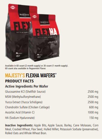 Majesty’s Flex HA Wafers – Superior Performance Horse / Equine Joint Support Supplement – HA, Vitamin C, Yucca, Glucosamine – 30 Count (1 Month Supply)