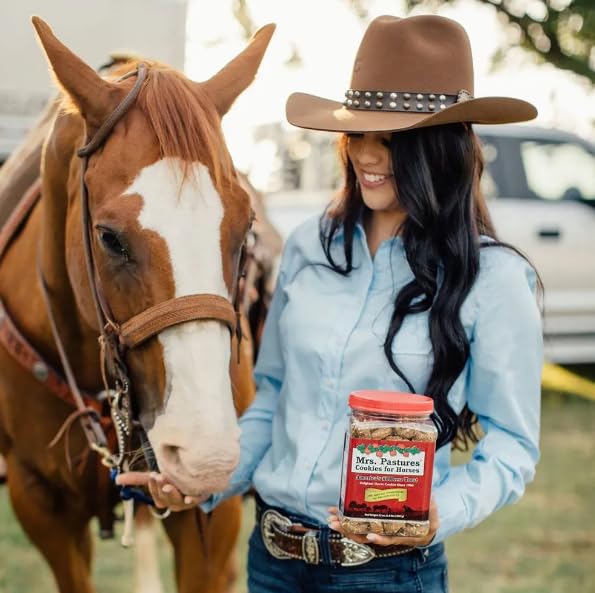 Made with all-natural, simple ingredients, Mrs. Pastures horse cookies were made to help nourish the human-horse bond. Originally designed with picky eaters in mind, try using them in your next training session — these special snacks have helped improve ground manners, trailer loading, mounting block patience and more!