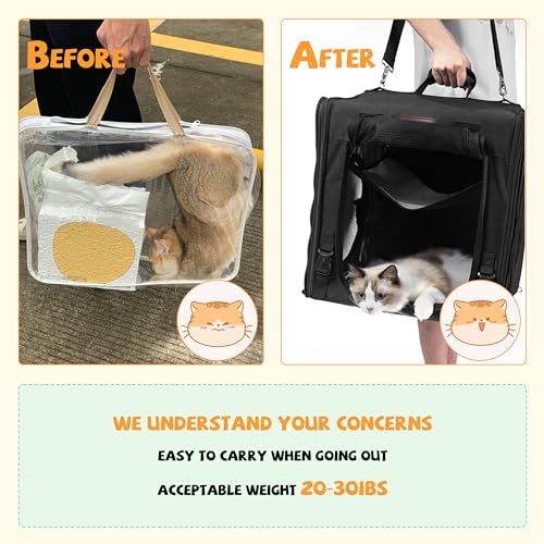 ✨ Comfortable – The extra-large dual-compartment structure offers spacious and comfortable space for kittens. The interior of the cage is divided into two symmetrical parts, with a selectively openable round passage in the middle, separating the two sides. Each part has a removable and delicate flannel hammock above, with a matching flannel cushion below. Your cat can rest and play in this joyful little nest, and we’ve also prepared a collapsible cat litter pan, making it a complete ‘apartment.’