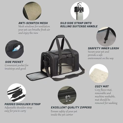 Cat Carrier Dog Carrier Pet Carrier Cat Bags for Small Medium Cats Dogs Puppies of 15 Lbs,of Airline Approved Small Dog Bag Soft Sided,Collapsible Travel Puppy Carrier (Medium, Black)