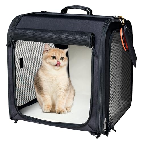 Extra Large Cat Carrier for 2 Cats,Expandable Cat Travel Carrier,Small Dog Soft Sided Collapsible Carriers with Foldable Bowl/Washable Mat/Tent Stakes for Kitten,Rabbit,Puppy,Small Animal