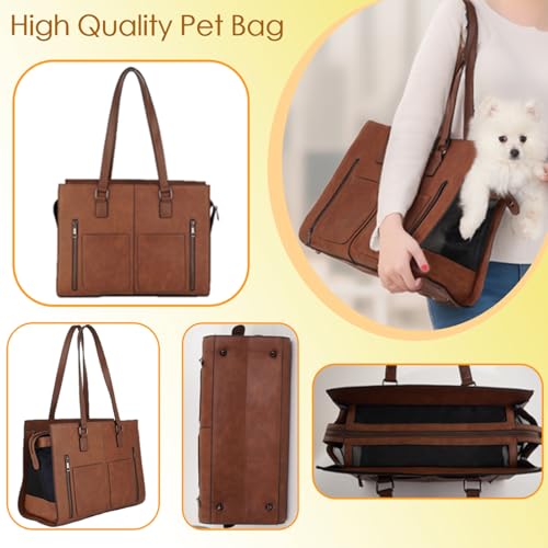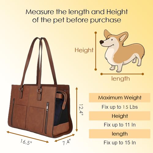 Fashion Pet Carrier Dog Cat Carrier Purse,Soft-Sided Leather Handbag Pet Tote Bag for Small Dogs Puppy and Cats TSA Airline Approved (Brown)