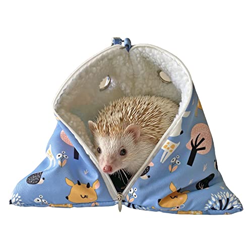 Handmade Cuddle Sack Sleeping Bag Pouch Small Animals Hedgehog Carrier Bag Pouch with Strap Breathable Vents Portable Outgoing Bag (Blue with Green Pad)