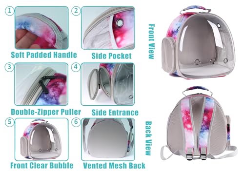 Hedgehog Backpack Carrier, Bearded Dragon Backpack,Small Animal Backpack for 2 Guinea Pig Lizard, Space Capsule Clear Bubble Window Carrier for Rat Parrot Bunny Rabbit (Galaxy Pink)