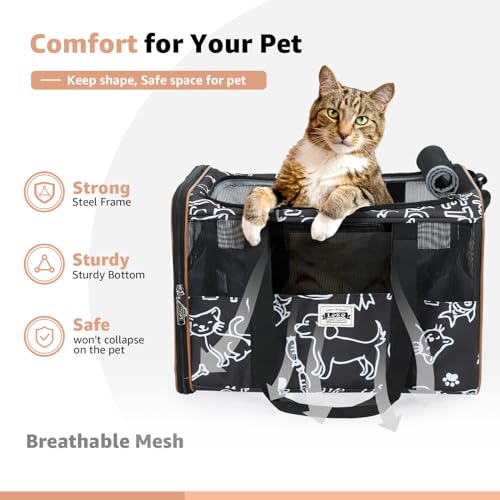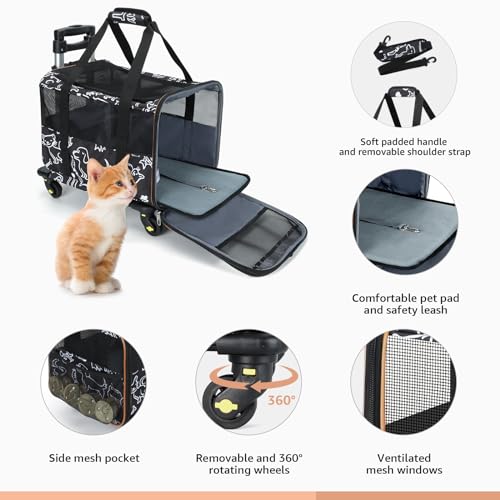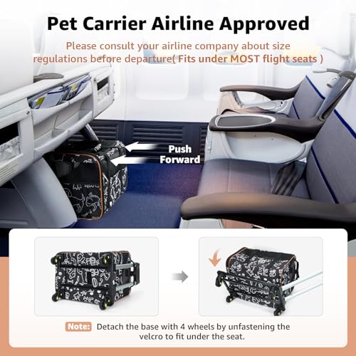 Lekereise Cat Carrier with Wheels for Small Pet, Airline Approved Dog Carrier with Wheels, Rolling Dog Cat Carrier, Black with Pattern