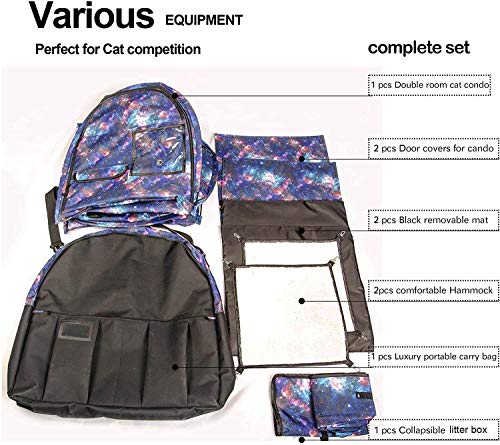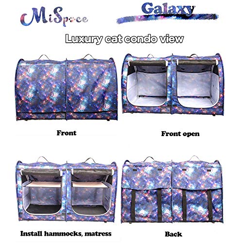Mispace Portable Twin Compartment Show House Cat Cage/Condo – Easy to Fold & Carry Kennel – Comfy Puppy Home & Dog Travel Crate with Portable Carry Bag/Two Hammocks/Mats and Collapsible Litter Box