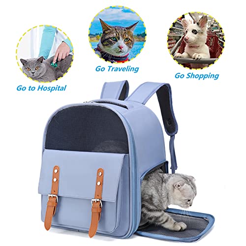 Pet Carrier Backpack with Breathable Design for Cat,Small Dog & Animals,Cat Backpack for Travel, Hiking, Walking & Outdoor Use,Collapsible Cat Bag Easy to Carry & Store(Blue)