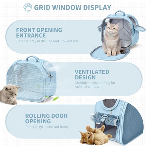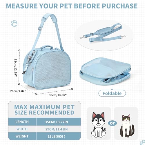 Pet Carrier for Medium Cats Small Dogs, Soft-Sided Portable Cat Carrier Under 13lb Collapsible Travel Puppy Carrier Pet Carrier Airline Approved for Cat Dog Carrier for Home Outdoor Travel Blue
