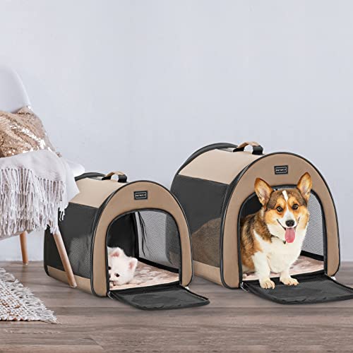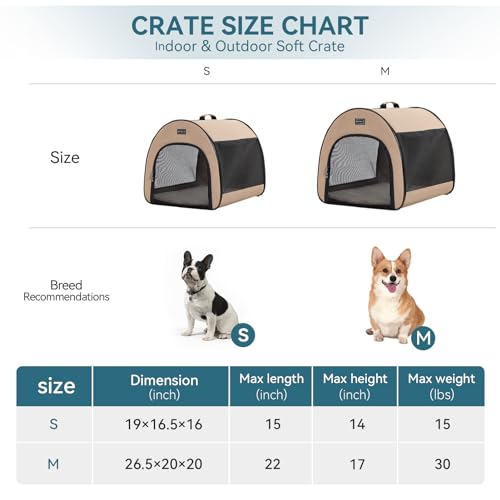 Petsfit Soft Sided Dog Crate, Arch Design Escape Proof Soft Collapsible Dog Crate, Small Dog Crate 16″ Lx19 Wx16 H, Khaki