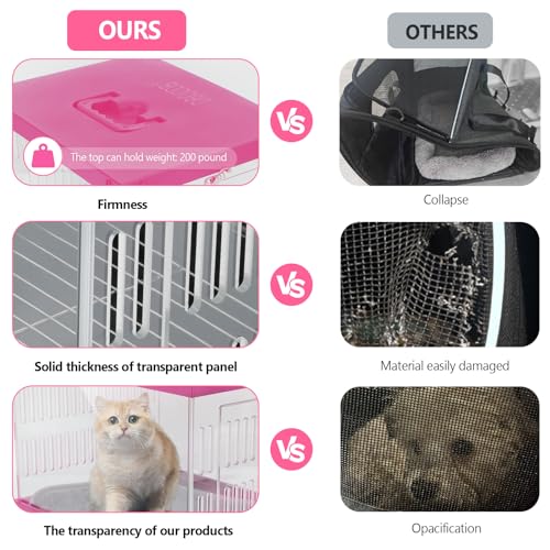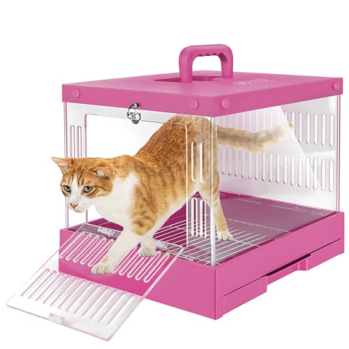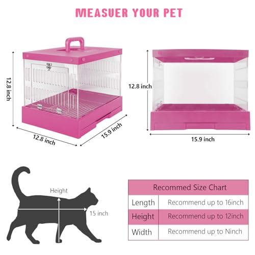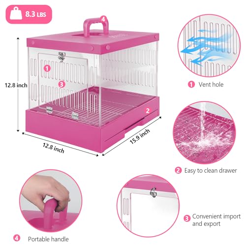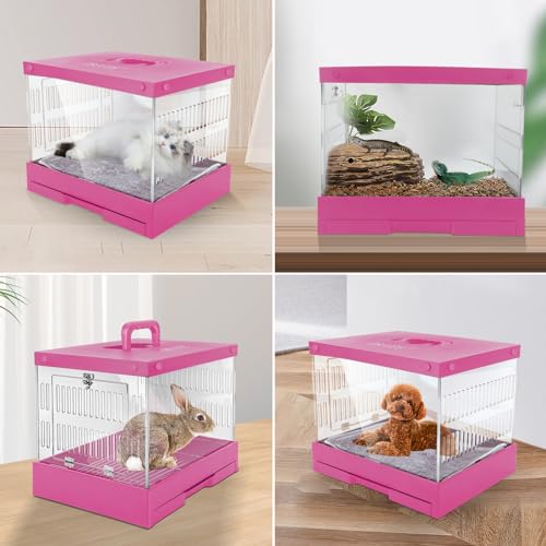 Transparent Hard pet cat Dog Rabbit Reptile cage Rugged and Suitable for Traveling Outdoors Indoors 15.9″ x 12.8″ x 12.8″ (Pink)
