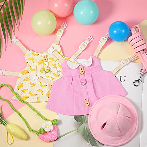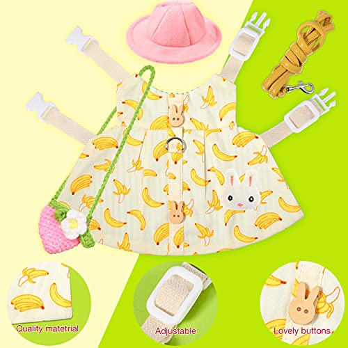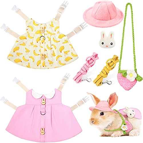 2 Sets Bunny Harness and Leash Set Rabbit Chest Harness Walking Vest Harness for Rabbit Kitten Small Pet Animals (Pink and Banana)