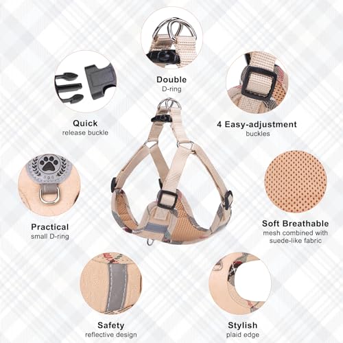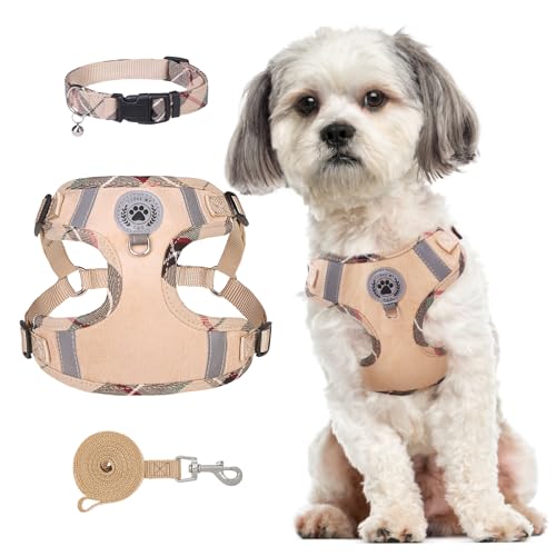 BEAUTYZOO Dog Harness Small Sized, Step in No Pull Dog Harness Collar and Leash Set, Easy Walking Reflective Vest for Small Dogs, Adjustable Soft Mesh Padded Puppy Harnesses Pet Accessories,Beige S