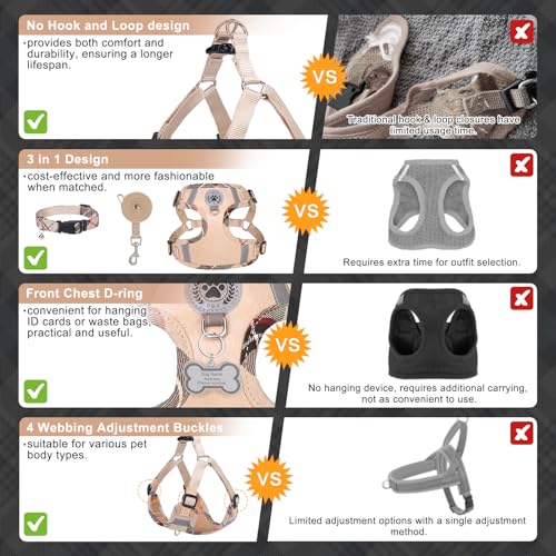 TOTALLY STYLISH 3 IN 1 COLLECTION — Get your furry friend ready for any adventure with our trendy 3-piece set, including a dog harness, collar, and leash. It’s not only super convenient, but also a fantastic value. Choose from a variety of colors and patterns to create a unique look for your pet.