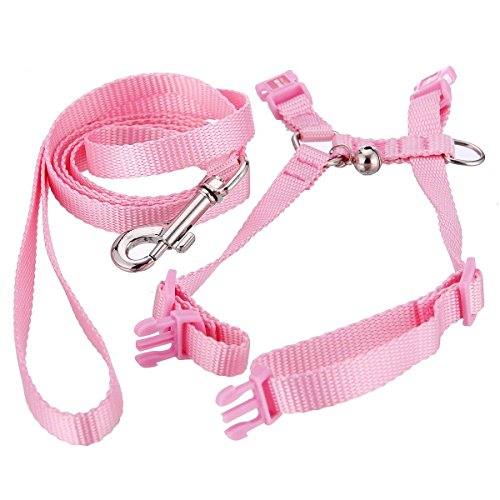 Hypeety Rabbit Bunny Harness with Leash Adjustable Soft Nylon Harness Rabbit Vest Harness Lead Leash Pink Blue Lead Leash All Season for Small Animals (Pink)