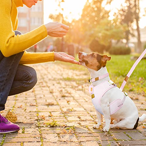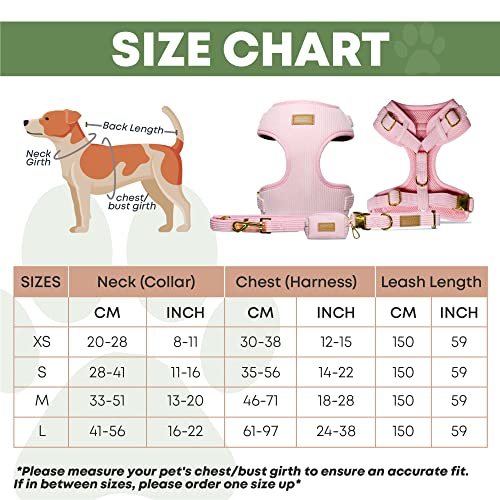 【Adjustable & Sturdy】🐶 The Banks Harness Set in Light Pink can be easily adjusted with our adjustable gold metal buckles to ensure that your dog harness and collar fits your pooch properly. Attach the leash to the harness with our gold metal D-ring clasp. The gold metal D-ring clasp allows more control for you while you walk your dog