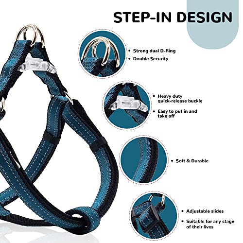 Reflective Dog Harness Collar Leash Set, Step-In Dog Harness for Small Dog, No Pull, Adjustable for Puppies, Easy to Put In &Take Off, Dog Collar and Leash Set for Small Dogs, Midnight Blue