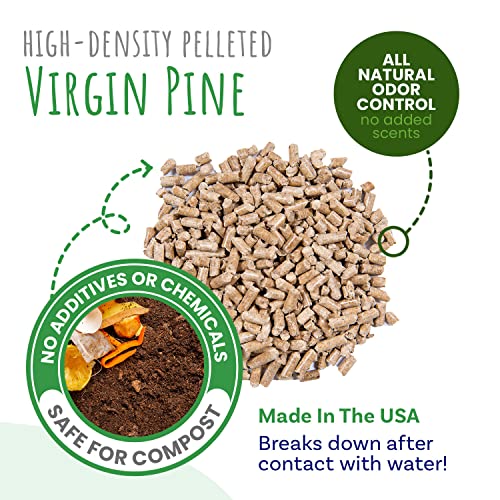 100% All Natural Pelleted Virgin Pine: Made in the USA without any harmful dyes, chemicals or additives, and free of the toxins associated with wood stove pellets; Made from wood shavings from already downed trees, so no new trees are cut down for this product; Breaks down easily and organically for safe disposal in your garden, compost, or organic waste bin