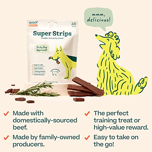 Designed in Denver, Colorado: At Woof, we create thoughtfully designed products so you can tell your dog “I love you” in a way they’ll understand. Man’s best friend deserves safe, clean, and long-lasting fun, and you deserve the quiet that comes with it. Super Strips are delicious, nutritious, and high-value beef jerky dog treats to satisfy man’s best friend.