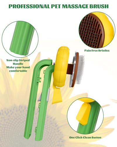 Sunflower Dog Brush for Short Haired Dogs, Cute Cat Hair Brush with Release Button, Self Cleaning Dog Slicker Brush Cat Deshedding Brush for Removes Loose Undercoat Mats Tangled