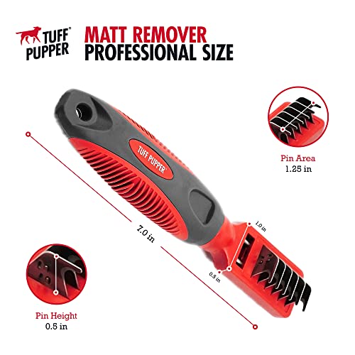 Tuff Pupper Deep Knot and Mat Remover Tool | Dematting Comb, Brush For Dogs, Cats, Small Animals | Remove Difficult Knots From Long Haired Dogs, Short Fur Dogs | Mat Splitting Grooming Comb for Pets