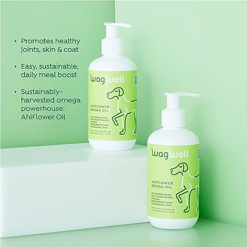 Ahiflower Omega Oil – Vet-Formulated Skin, Coat, Hip and Joint Supplement for Dogs – Plant-Based Omega 3, 6 and 9 Supplement – Natural Non-GMO Dog Omega Oil, 8 fl.oz. Pump Bottle