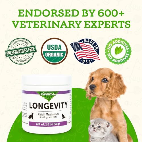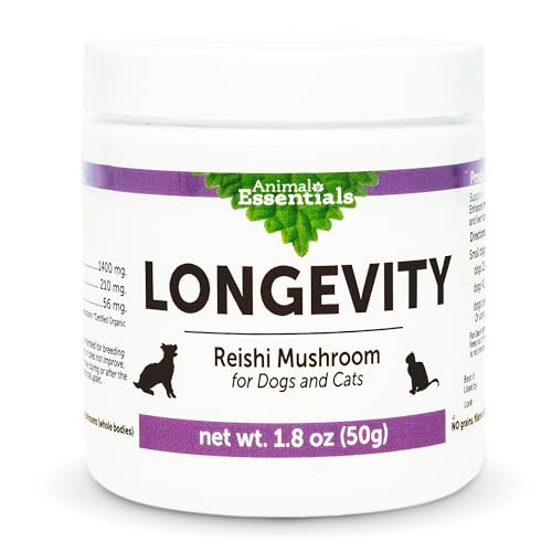 Animal Essentials Longevity Reishi Mushroom Supplement for Dogs & Cats – Healthy Cardiovascular & Liver Function, Supports Long Term Health, Mushroom Powder Extract, Antioxidant – 1.8 Oz (Pack of 1)