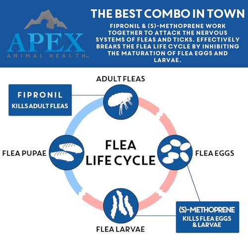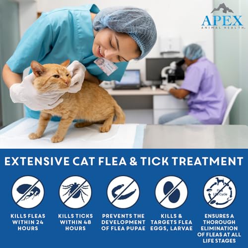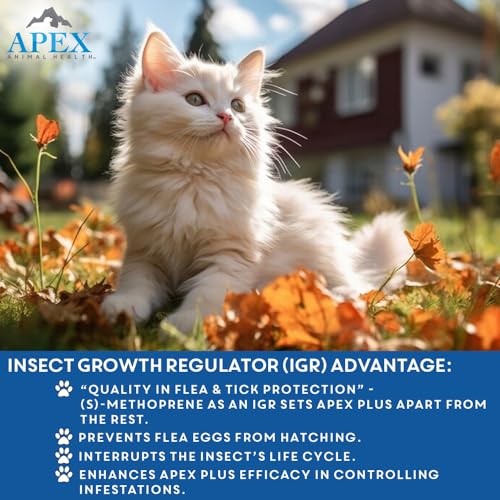 EFFECTIVE CAT FLEA & TICK TREATMENT CONTROL — Kills fleas, ticks, flea eggs, and larvae for a full 30 days, ensuring your cat is shielded year-round. Apex Plus cat flea treatment manages all flea stages, breaking the cycle by targeting adult fleas, eggs, larvae, and preventing pupae development.