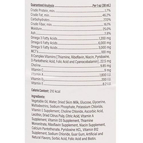 WEIGHT – supplies 210 calories of highly digestible fats, carbs, and proteins per ounce to support weight gain