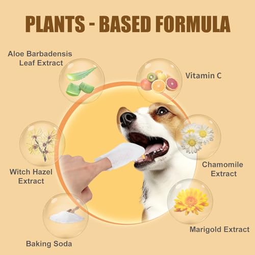Dog Teeth Finger Wipes for Dogs & Cats, 100Pcs Dog Dental Cleaner Wipes for Teeth and Gum, Pet Oral Cleaning Wipes, Freshen Breath, Reduce Plaque & Tartar